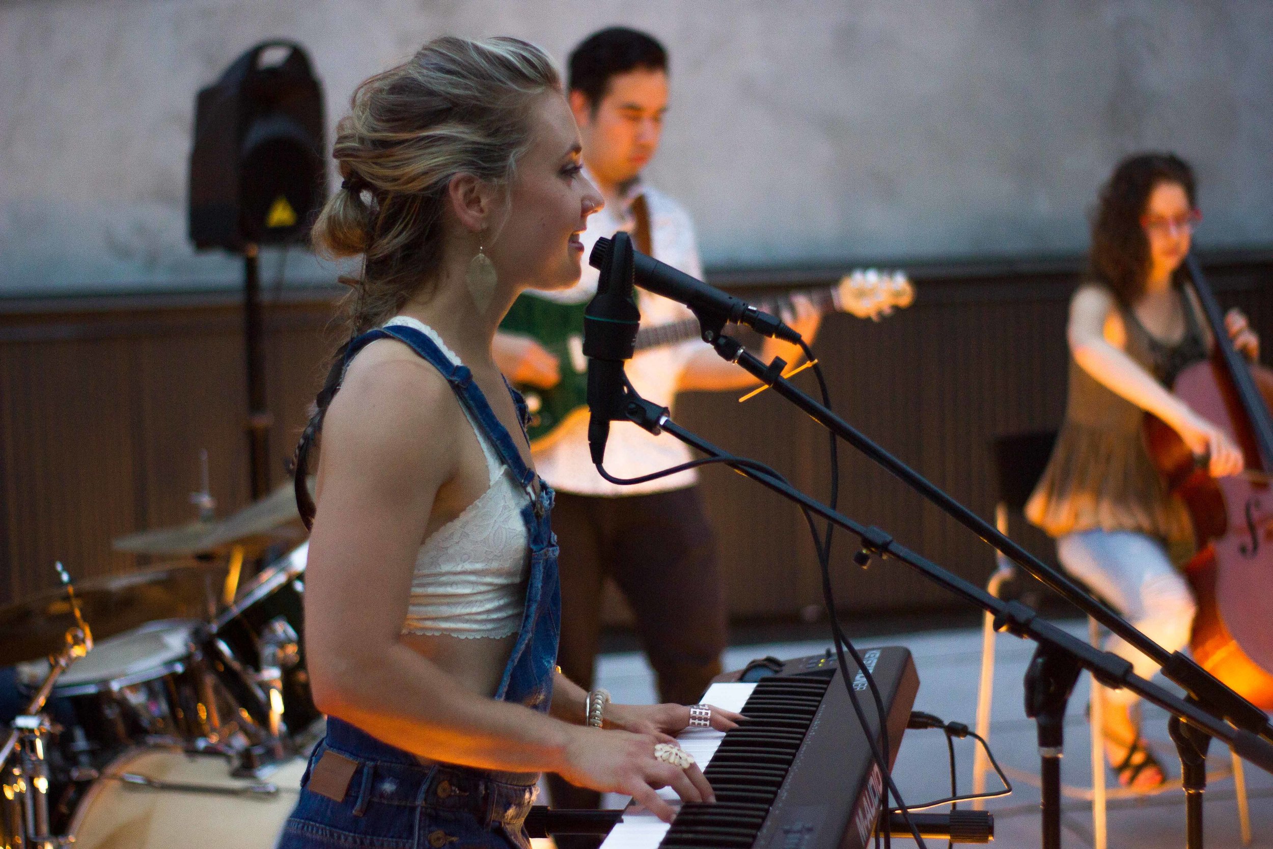 We've done this in two different filming styles. In the woods, it was a traditional external camera crew. On the roof, the video was crowd-sourced. Everyone in the audience took a video from their phone of a different section of the EP, and the end visual product will be constructed from everyone's participation.